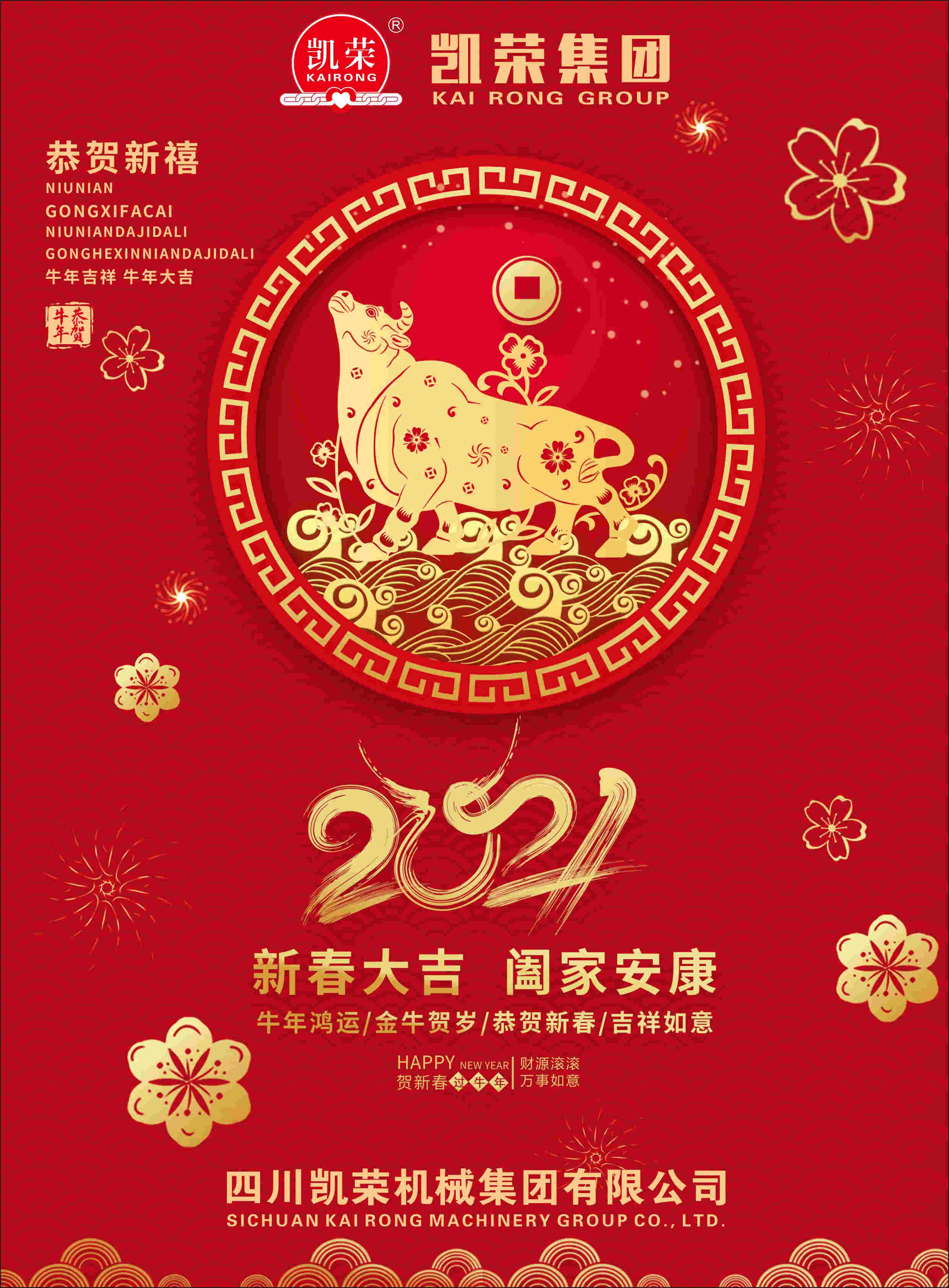 2020年悄然離去,2021如約而至,凱榮集團感謝新老客戶對我們工作的信任和支持,過去如果有些照顧不周的地方還請你們見諒!作為起重服務行業,我們一致著力于提升自我,重視每一位客戶對我們的評價,熱衷接受每一位客戶對我們的監督和建議。我們深知,我們所取得的每一點進步和成功,都離不開您們的理解、信任、支持和參與,您們的每一次推薦和好評,都會讓我們感動,促使我們不斷奮進。為了不辜負您們的信任,我們絲毫不敢懈怠,一直努力改進我們的工作,改善我們的服務,力爭每天都有進步,以使您們對凱榮集團的選擇沒有錯,希望在今后的歲月里,凱榮能夠更好的為您們服務!值此新春佳節來臨之際,凱榮集團全體員工,給大家拜個早年,恭祝大家新的一年身體健康!萬事如意!牛年大吉!