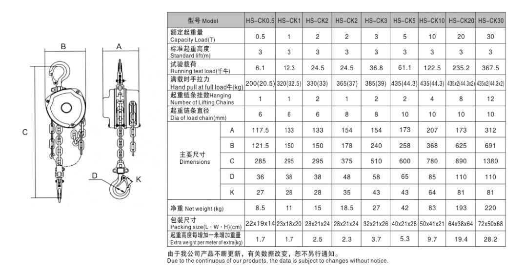 1、開放式框架設計,易清潔。2、可選配限載器。3、自動雙棘爪剎車系統。4、標準配置高強度合金鋼起重鏈條和電鍍鋅手拉鏈條。…